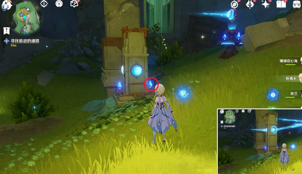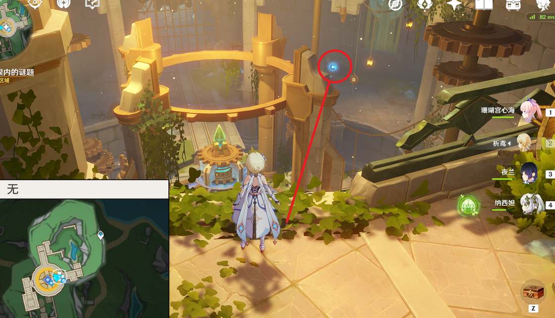 4、到南边的升降柱,对右边的晶体发射光束使其升到2格。