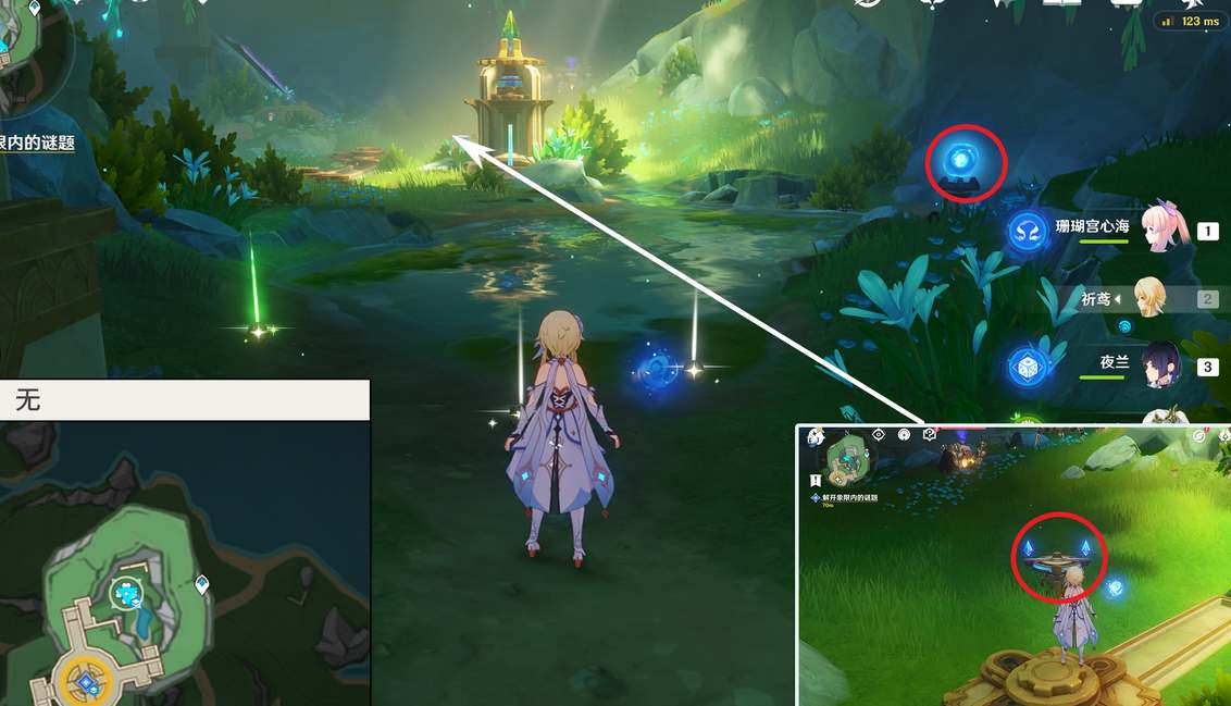 11、吸收章鱼的力量,将南边机关的旋转180°,再将北边的旋转180°,启动装置放流。