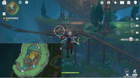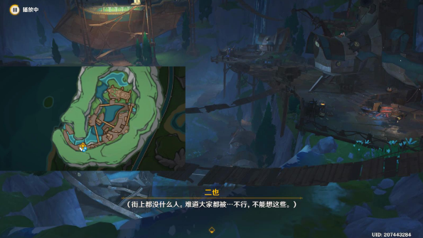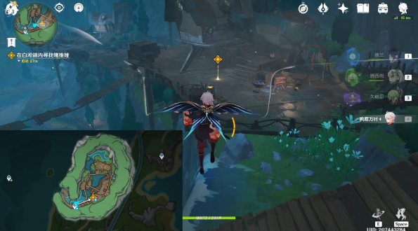 6、之后要在白淞镇内寻找娜维娅,直接往地图的东北方向飞,前往上层平台,可以与娜维娅对话。