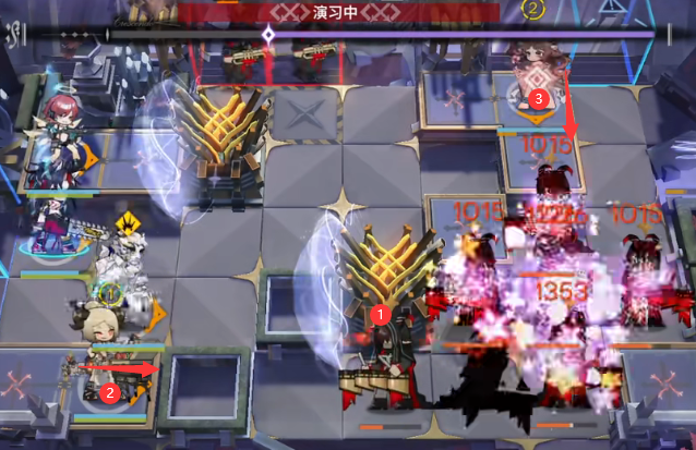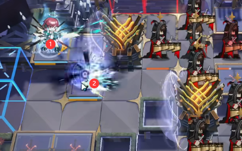 开局直接摆放能天使(向右),打死第一个小怪后如图位置部署<湮灭之相>。