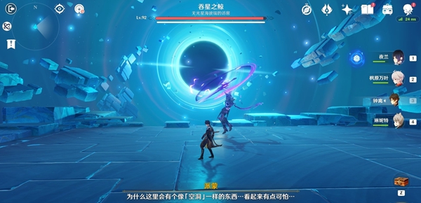 等过boss剧情之后就会提示玩家去攻击紫色圆球,在被鲸鱼吃掉后是会进入幻化世界。