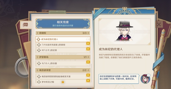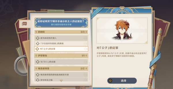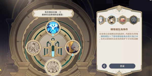 接着就继续选择那维莱特对话:盘点真相,最后在佐证选择的是【梦中所见之鲸】。