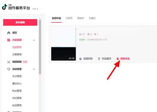 4、删除视频是不可逆的,一旦删除就无法恢复,而且大量删除视频会对账号的权重带来影响,降低后续发布作品的曝光率,建议大家不要轻易删除视频,可以选择将以前的视频隐藏,设置为仅自己可见。