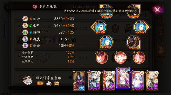 低速sp三尾狐 火荒/狂荒 攻攻攻,指标攻击(参考非下限:12773攻,尽量不要带暴击)
