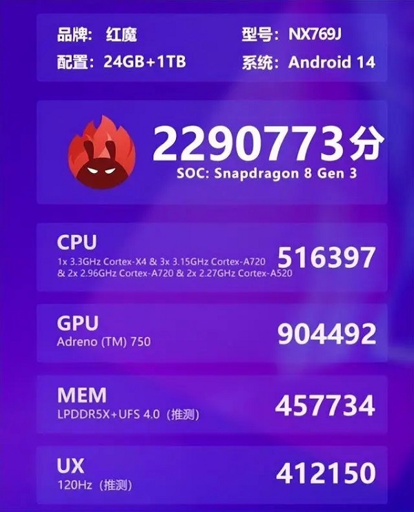 4、红魔9 Pro最新ATT跑分也出来,达到了惊人的229万