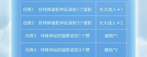3、前往特殊留影坛,并且放置指定的留影蜡烛,完成录制、点赞任务,可获得蜡烛灯奖励。