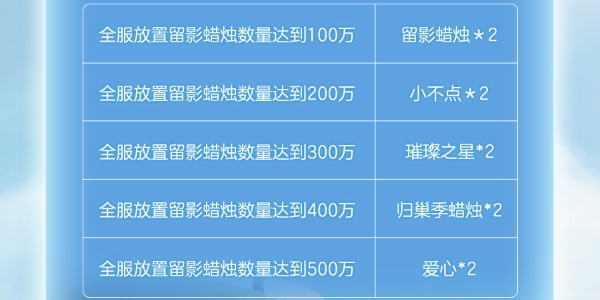 4、当全服的留影蜡烛达到一定数量,将会发放额外奖励。