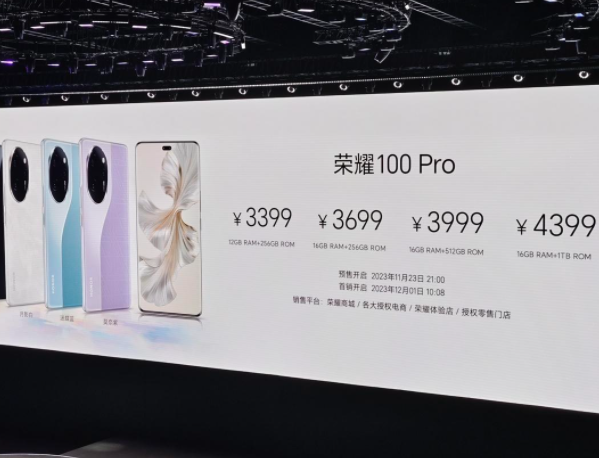 荣耀100pro拥有四个版本,价格最便宜的为12+256GB,售价3399元。