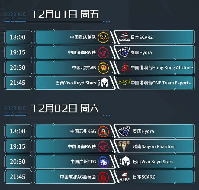 2、小组赛第二周:12月6日-12月9日,15:00开赛,每日6场BO2;