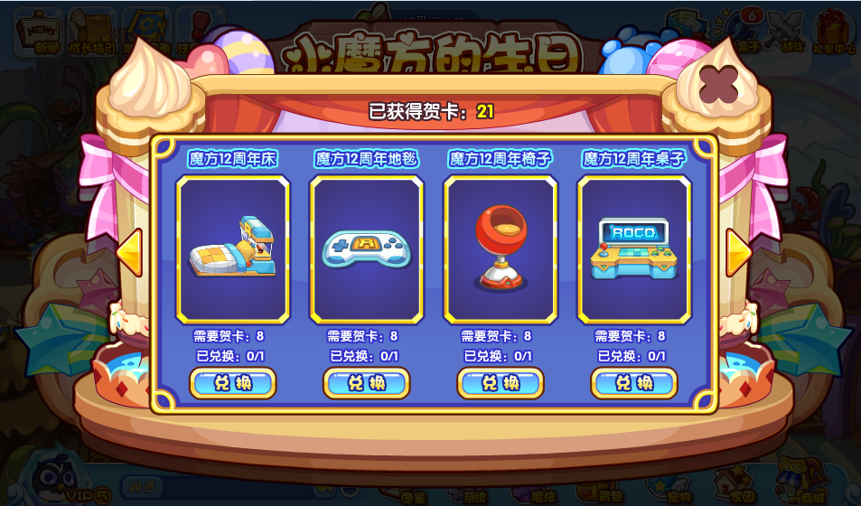 魔方系列家具又可以兑换啦!小洛克们收集贺卡前去兑换吧。