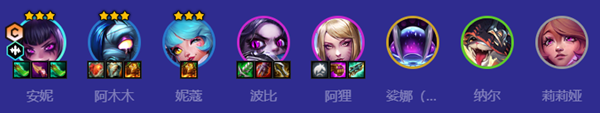 安妮、阿木木、妮蔻、波比、阿狸、娑娜、纳尔、莉莉娅