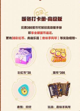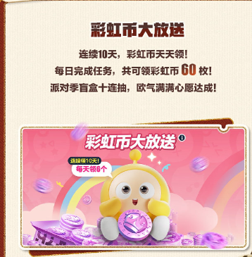 福利二:每日任务完成领取六枚彩虹币