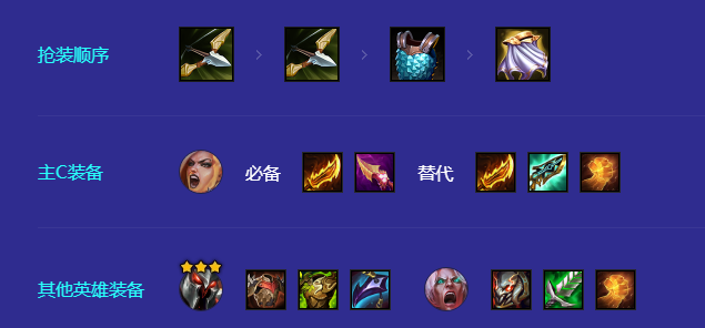剑姬带双吸血,第三件光明装备是固定的光明血手。奎因拿物理装备,第三件固定光明杀人剑。多余防装给皇子。