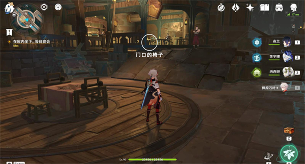 5、再往西北方走,做到门口的椅子上,等待宴会。
