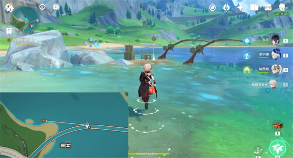 6、传送钓鱼协会东北方锚点往西方游,在海边与娜维娅对话。