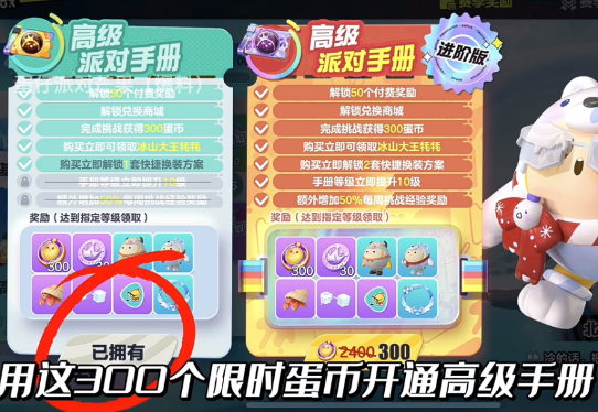 4,大家可以拿这300个限时蛋币开通高级手册,