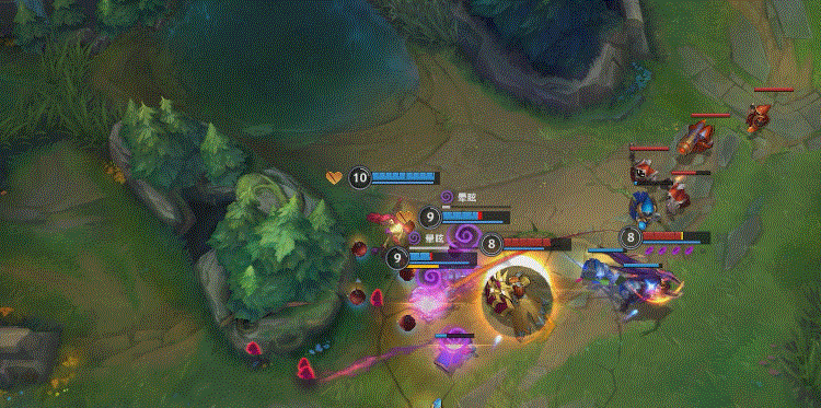 若选择打反手,我们可以在敌方先手开团后,利用E(3)技能的控制阻断敌方的切入,接着释放大招控制多名敌人分割战场,配合队友完成局部多打少,赢得团战。