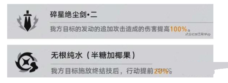 1.2个角色光环,选择【碎星绝尘剑·二】和【无根纯水(半糖加椰果)】