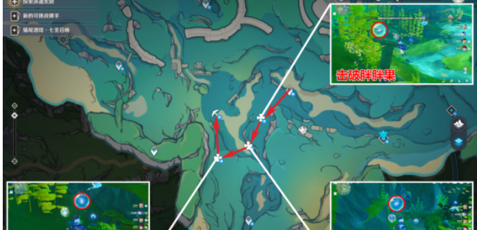 7.原神秘宝迷踪第三天藏宝地3路线如下: