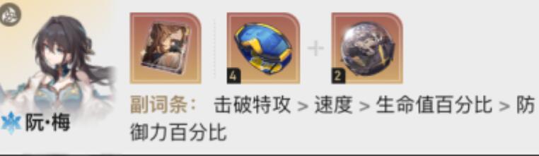 阮梅:副词条:击破特攻>速度>生命值百分比>防御力百分比