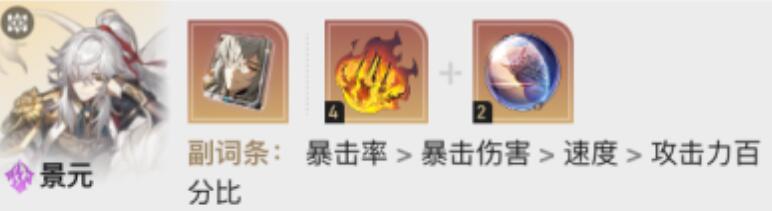 景元:副词条:暴击率>暴击伤害>速度>攻击力百分比
