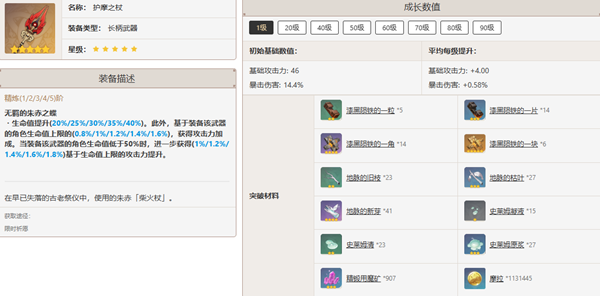 3、护摩之杖:攻击力2432,暴击率67.6%,暴击伤害225%。