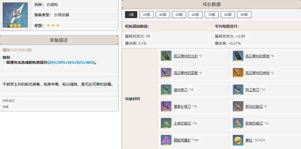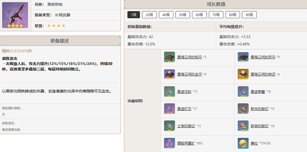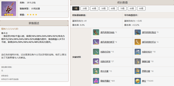 2、决斗之枪:攻击力1810,暴击率85.5,暴击伤害170.9%。