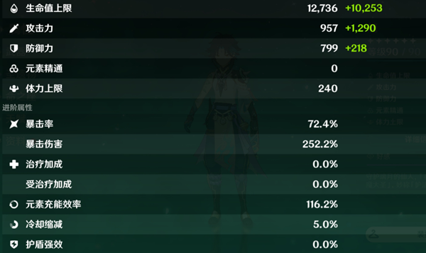 1、和璞鸢:攻击力2244,暴击率76.7%,暴击伤害153.4%。