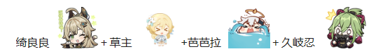 三、绮良良+草主+芭芭拉+久岐忍(四星队伍)