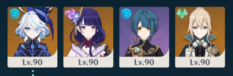 思路:首先推荐使用芙宁娜并放置在第一位并能增伤挂水副c,大招还能进行增伤,其他成员根据实际需求来选择,
