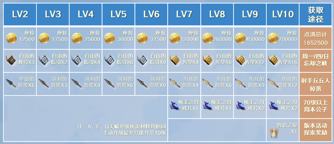 10级天赋突破:自由的哲学*16、历战的箭簇*6、魔王之刃*2、智识之冕*1