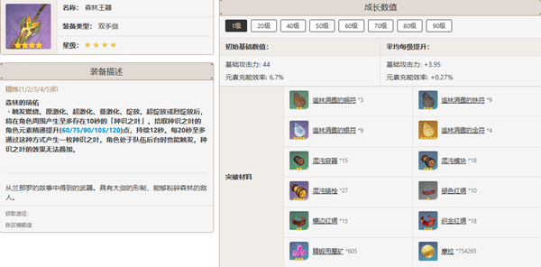 提升元素充能效率,触发燃烧、原激化、超激化、蔓激化、绽放、超绽放或烈绽放后,拾取种识之叶,提升元素精通。