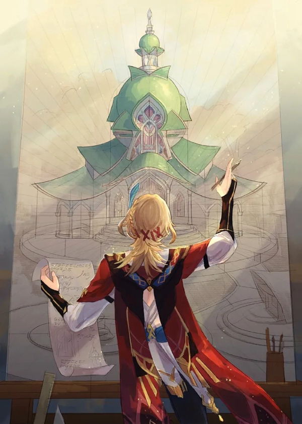 提升元素精通,基于装备者的元素精通百分比,提高自身攻击力,并基于该提升的攻击力,为队伍中附近的其他角色提升攻击力。