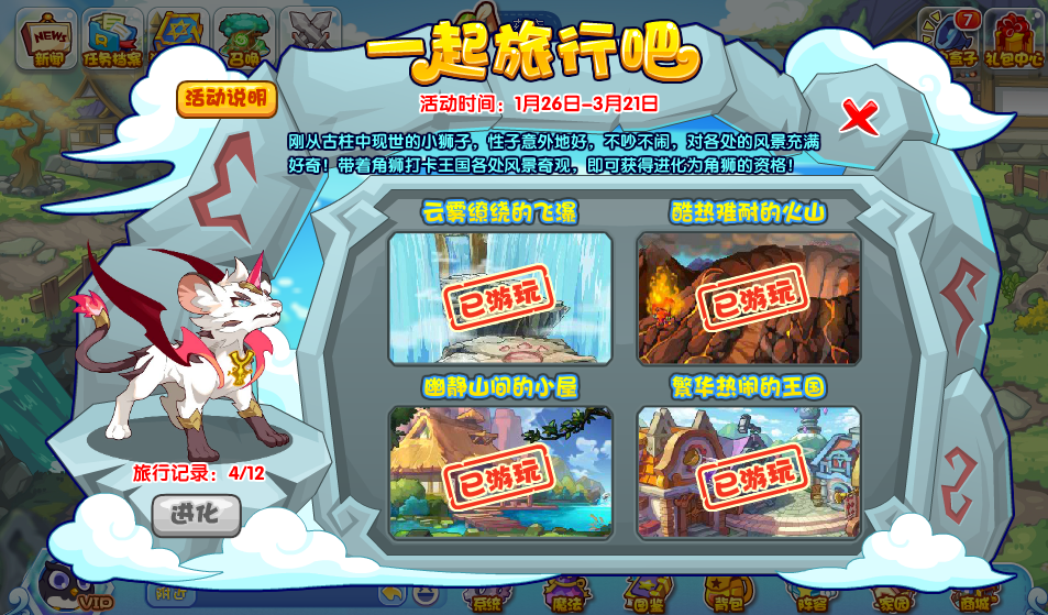 累计完成12个场景的打卡,就可以开启第二阶:角狮的超进化啦!