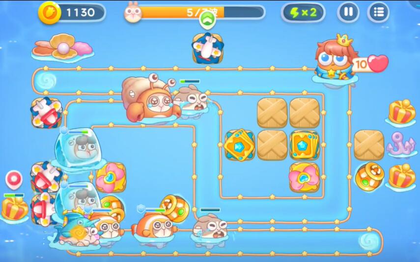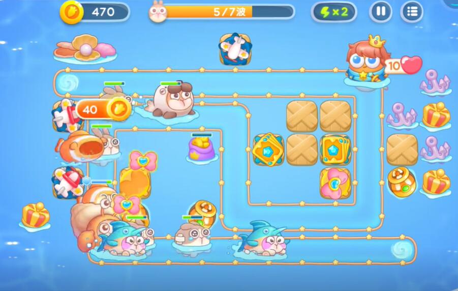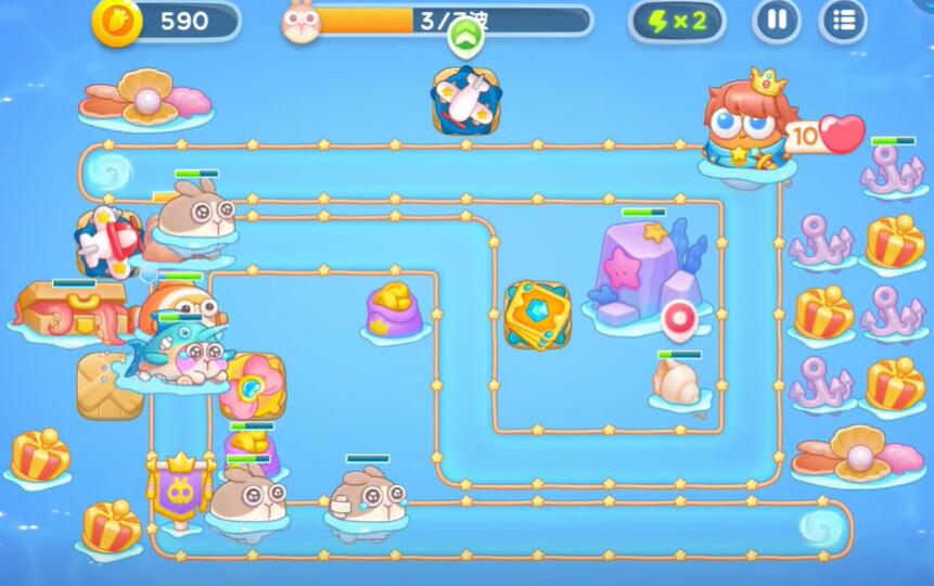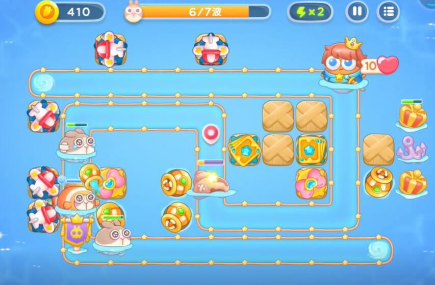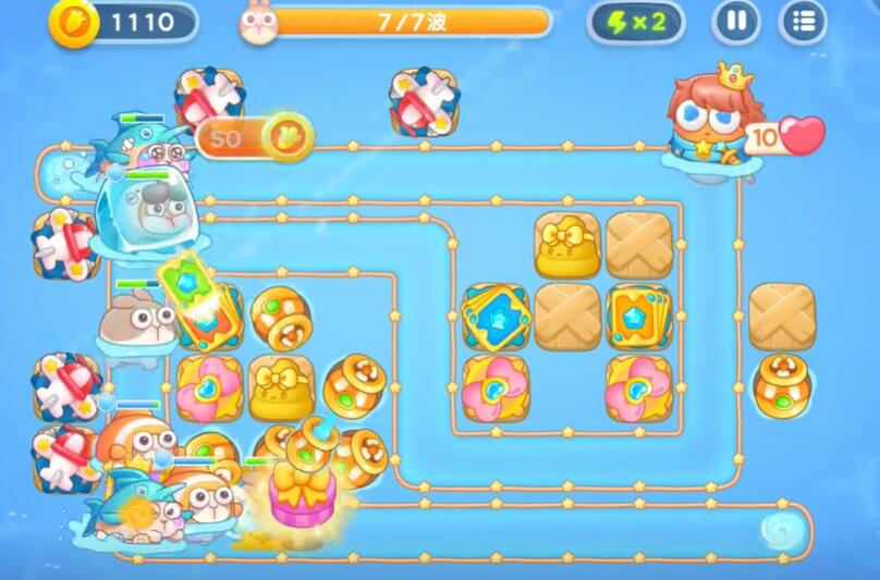 9、在中间和右侧补充额外的鱼雷塔和卡牌塔,同时建造金色的便便来对敌方单位进行减速,即可完成挑战。