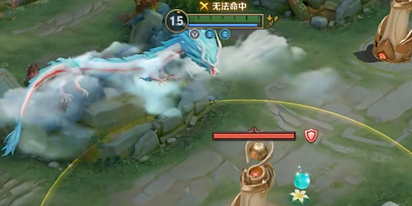 敖隐显露白龙真身冲上云霄,期间无法攻击、无视地形且不可被选中最多持续4.5秒(可提前结束)。随后向前俯冲(过程中不可被选中)对路径上敌人造成物理伤害和减速并在落点处对敌人再次造成同等伤害和惧龙效果,持续1秒。