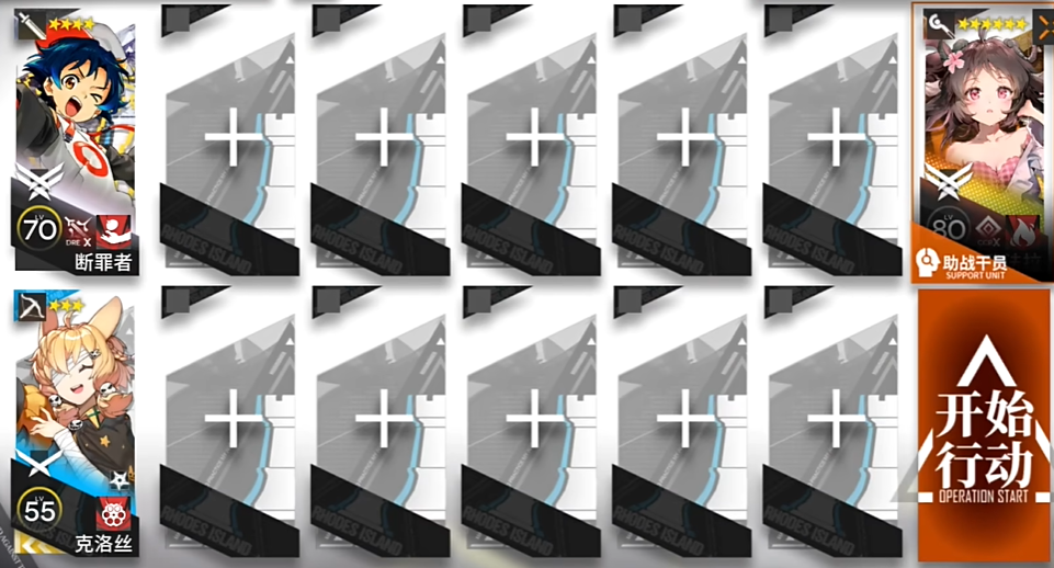 需求干员:艾雅法拉、克洛丝(任意高台输出),下图中的断罪者是拿来借干员的可以无视。