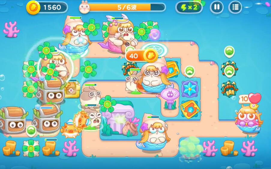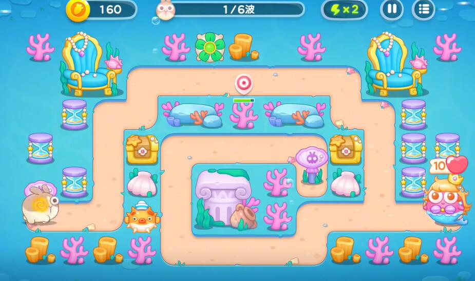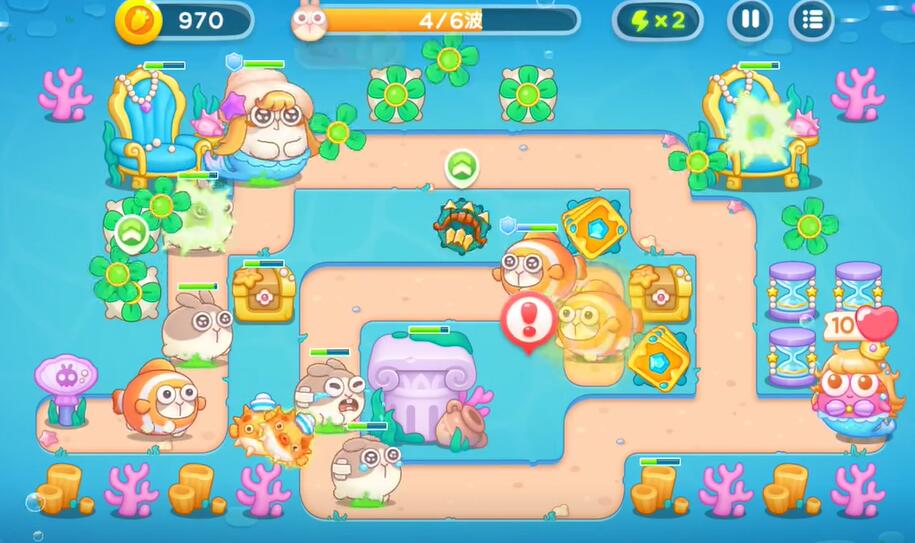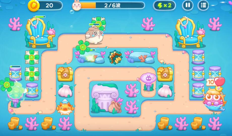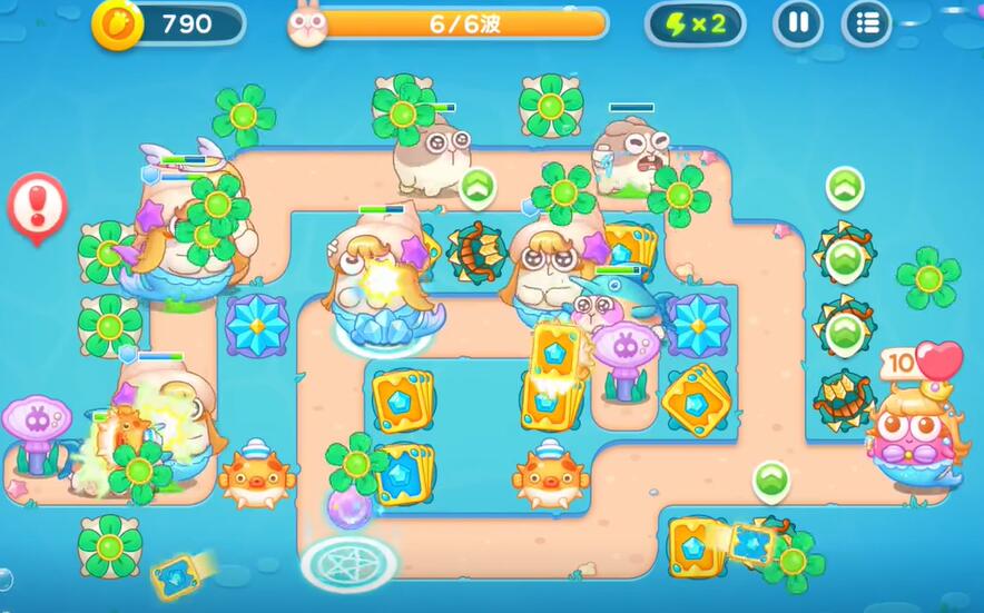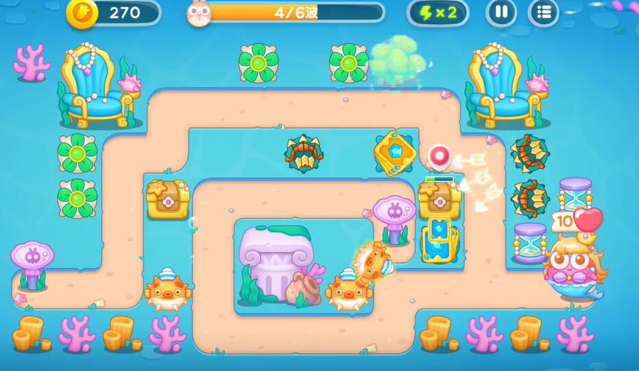 4、在右侧补充多重箭清理障碍,中下方建造一个河豚进行输出。