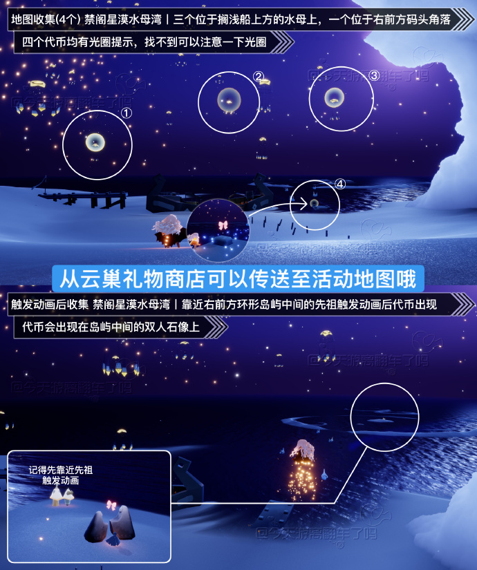 靠近水母湾先祖触发动画后收集:1枚