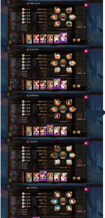 SP大蛇、SP追月和神乐锁四技能,其余式神妖术即可。