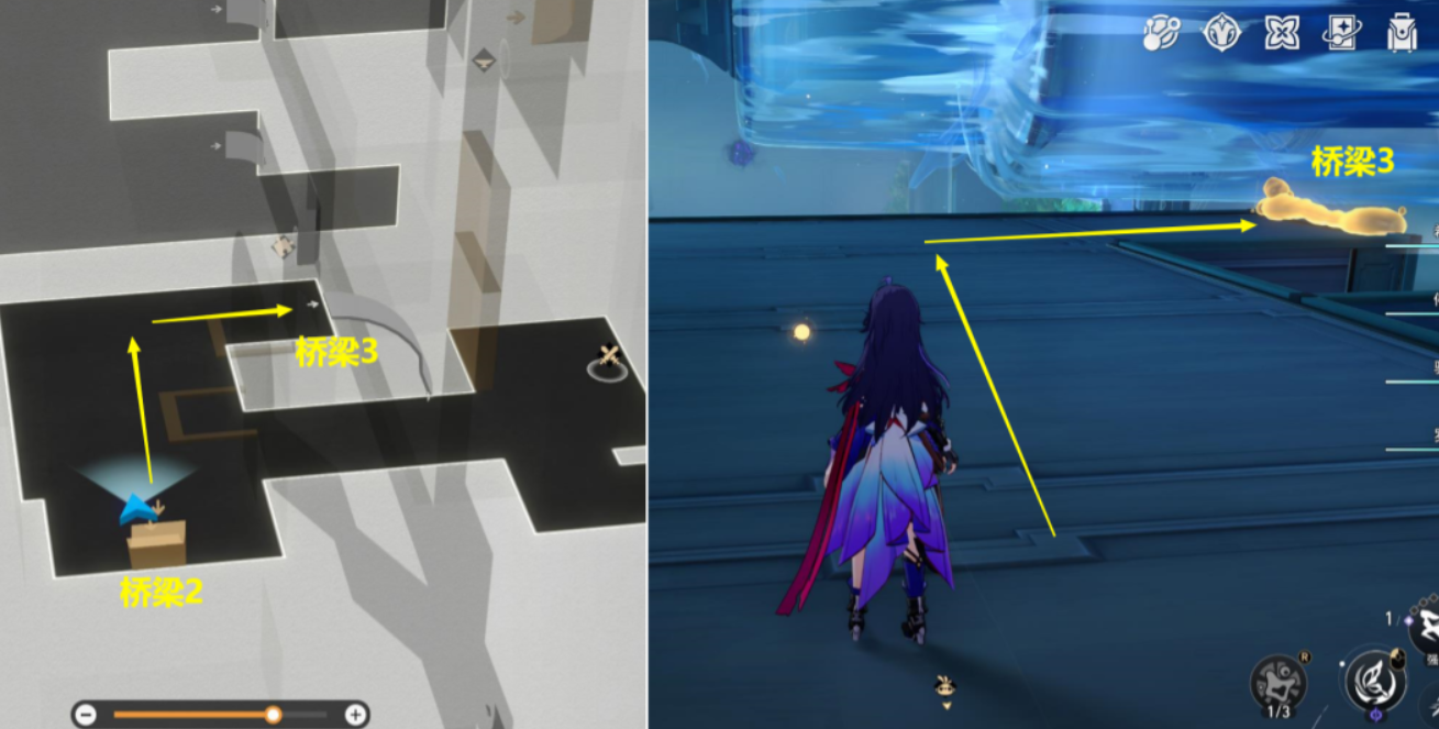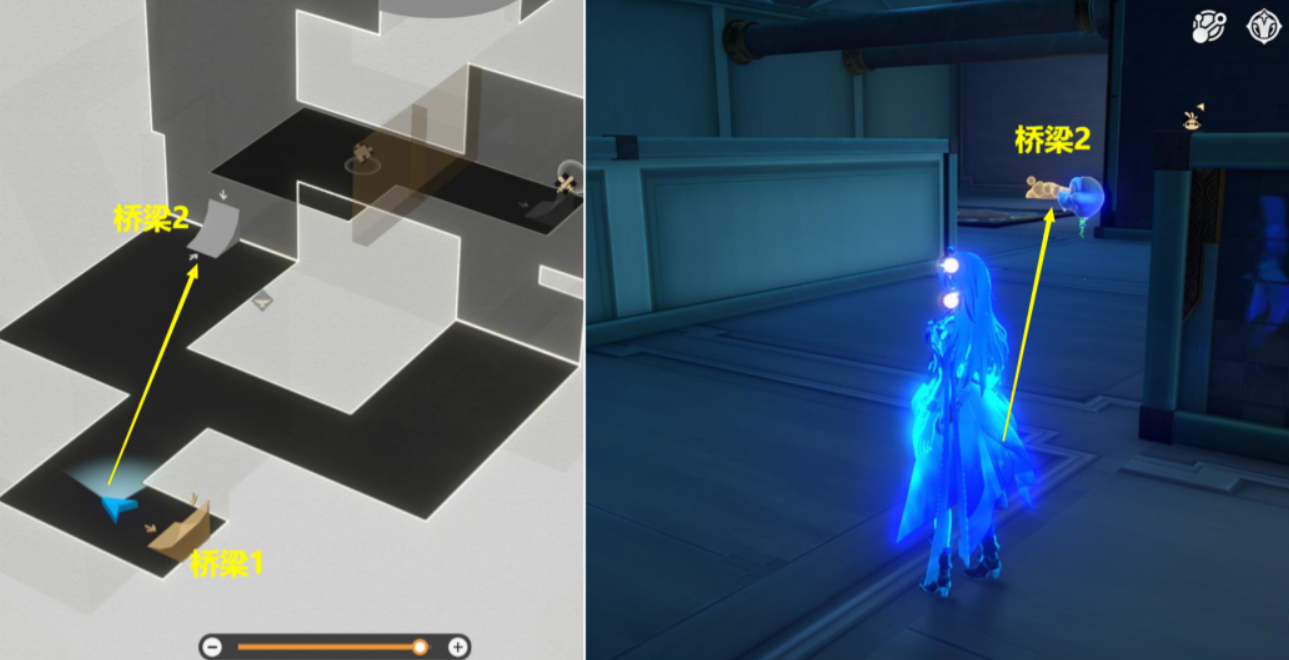 从【桥梁1】上来后,再从右边【桥梁2】上去