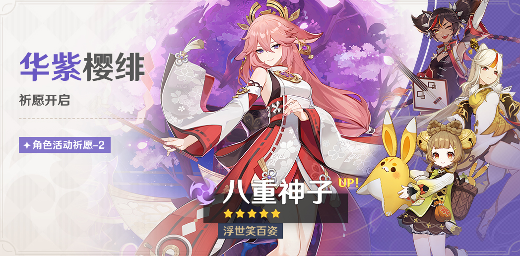 ●活动期间,限定5星角色「浮世笑百姿八重神子(雷)」的祈愿获取概率将大幅提升!