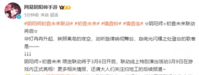阴阳师初音未来多久联动?马上阴阳师的联动活动就要来了,那么这次和初音未来的联动时间是什么时候呢?小编接下来为大家详细的解答一下这个联动是在什么时候吧!