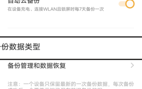 2、需要注意的是,两台手机都要登录同一个云端账号,然后找到备份数据类型。