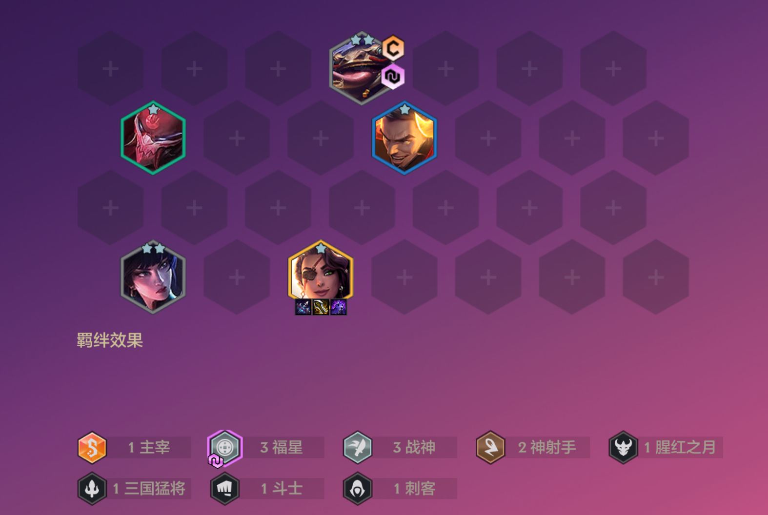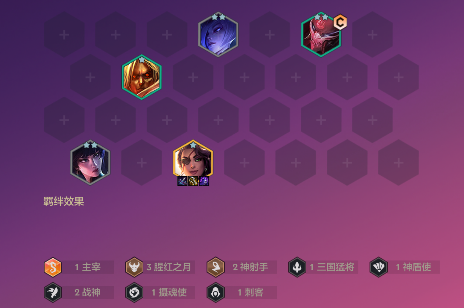 莎弥拉击杀敌方单位有30%概率会爆金币,也是十分爽的五费开局之一,所以前期装备一定要给莎弥拉拉满,再搭配上战神和神射羁绊,框框打钱,快速上人口。