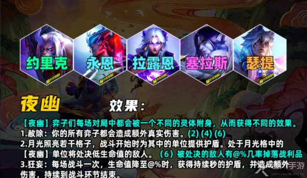 · 月光照亮若干格子:战斗开始时为其中的单位提供护盾。处于月光格中的【夜幽】单位将处决低生命值的敌人。
