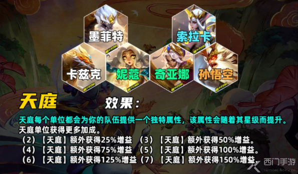 天神弈子会为我方所有单位带来独特增益,还会随着天神弈子的星级提高。天神单位会获得更多增益,相当于S7的冒险家羁绊