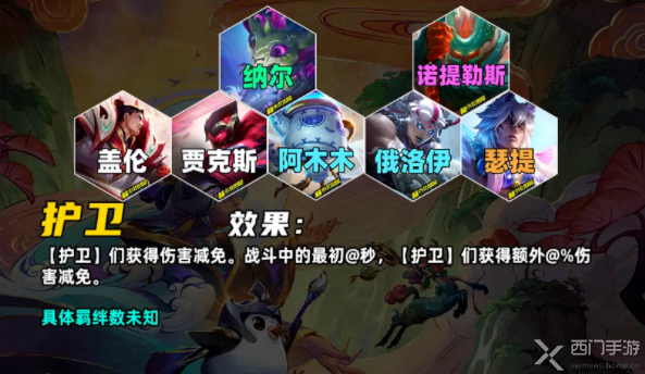 【护卫】们获得伤害减免。战斗开始后的10秒内,【护卫】们获得额外12%的伤害减免
