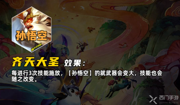 每进行3次技能施放,【孙悟空】的就武器会变大,技能也会随之改变