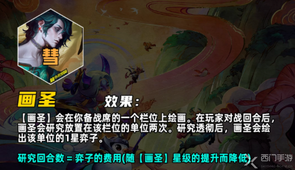 研究透彻后,【画圣】会绘出该单位的1星弈子。研究回合数 = 弈子的费用(随【画圣】星级的提升而降低)